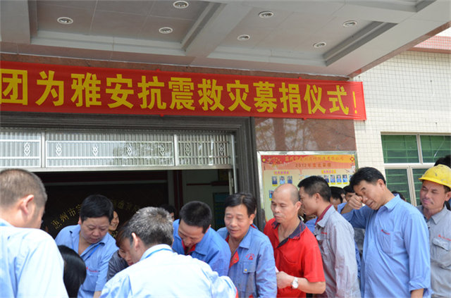 24日下午,集團(tuán)下屬各廠員工積極響應(yīng),紛紛行動(dòng)起來(lái),踴躍捐款,從公司領(lǐng)導(dǎo)到一線員工,全體員工紛紛伸出援助之手,你100元,我200元,一份份愛(ài)心從員工手中送進(jìn)捐款箱,短短一個(gè)小時(shí),就募集到愛(ài)心資金三萬(wàn)余元,為雅安受災(zāi)群眾送去了關(guān)愛(ài)和溫暖,以實(shí)際行動(dòng)幫助受災(zāi)群眾渡過(guò)難關(guān)。
