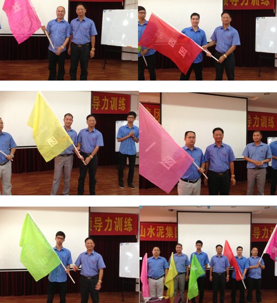 在公司和中旭股份的精心籌備和策劃下,將參加培訓(xùn)的員工分成了5個團隊進行PK,吳國強董事長為五個團隊授團旗。
